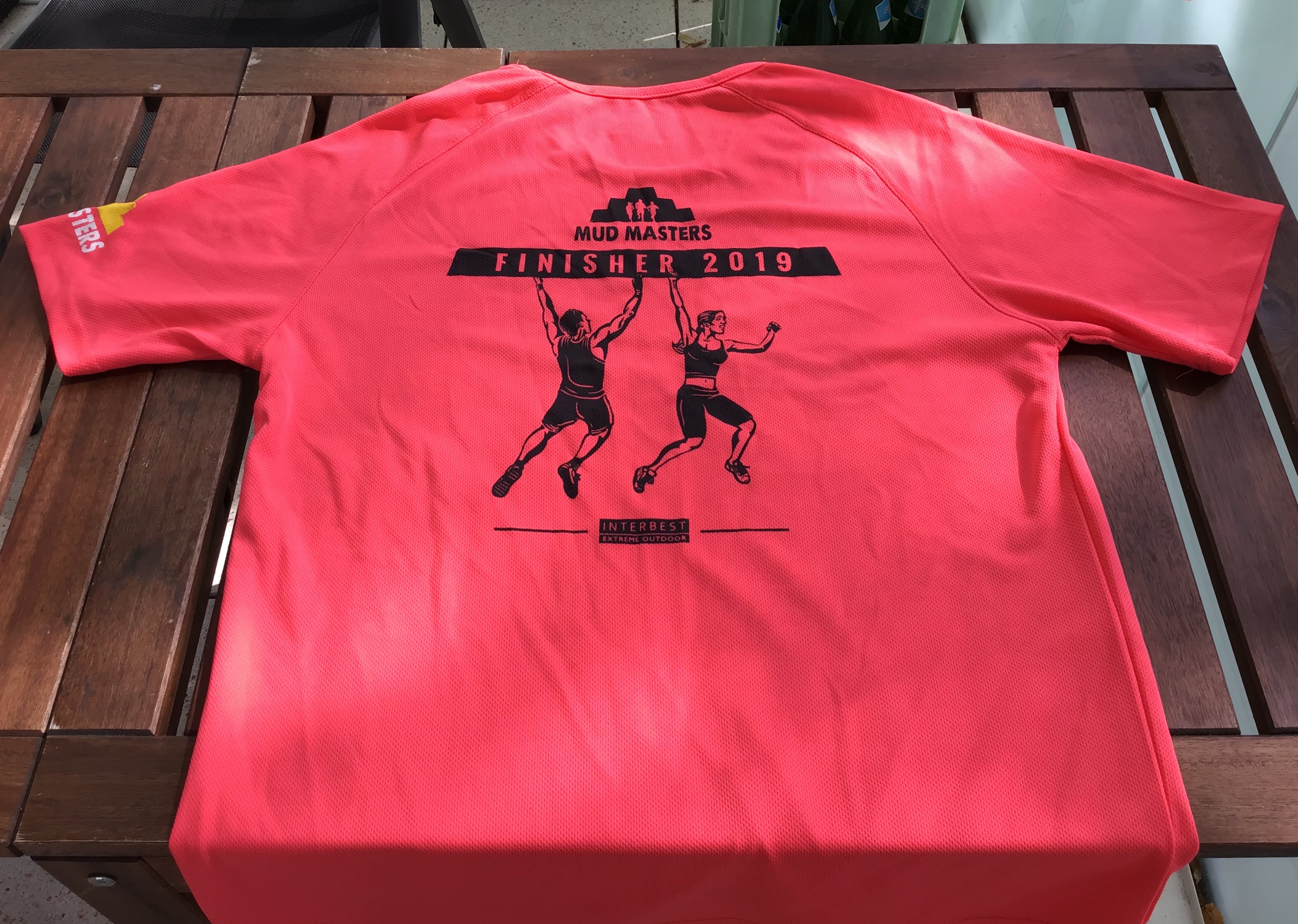 Über die Farbe des Finisher-Shirts lässt sich streiten… Das Design wirkte etwas lieblos. Gerade im Vergleich zu den schicken Shirts vergangener Mud Masters war ich doch recht enttäuscht.